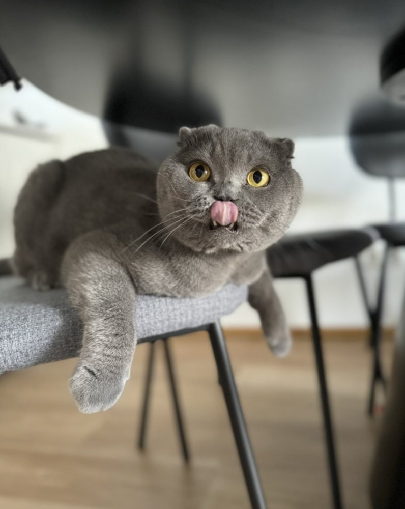 Gesundheitlich ist er gut betreut: Als Scottish Fold-Mischling wurde er regelmäßig geröntgt und tierärztlich kontrolliert – bisher ohne Befund.